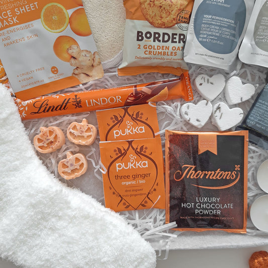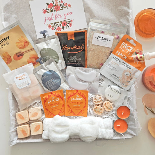 Celebrate cosy nights and seasonal self-care with our Autumn & Halloween Pamper Boxes. Packed with autumnal scents, warm textures, and relaxing treats, these hampers are perfect for embracing the magic of the season. From spooky Halloween surprises to calming autumn evenings, each box is designed to bring comfort and joy. Perfect for Autumn birthdays, Halloween Boo Boxes, Cosy self-care nights, Seasonal pamper gifts. Wrap yourself or a loved one in the warmth of autumn with these thoughtful pampering hampers.