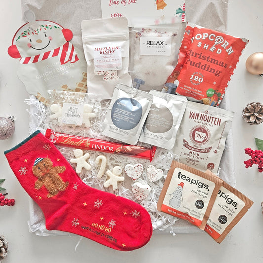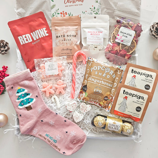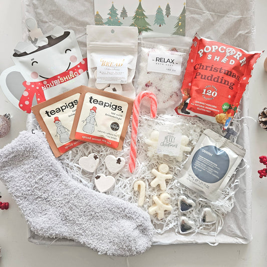 Each box is filled with indulgent self-care essentials, artisan treats, and festive surprises — from soothing bath soaks and handmade biscuits to cosy candles and winter skincare favourites. Every gift is elegantly packaged and ready to delight, making it easy to send love and Christmas cheer, near or far.