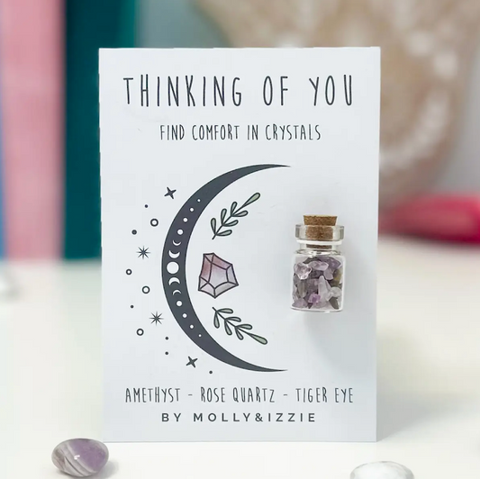 Explore our collection of crystals and spiritual gifts, designed to promote mindfulness, positivity, and inner peace. From pocket-sized healing stones to intention-setting tools, each item can be purchased on its own or added to one of our curated gift boxes for a more meaningful and personalised touch. Perfect for birthdays, self-care, new beginnings, or spiritual gifting.